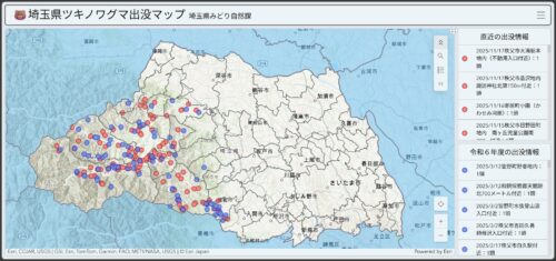 埼玉県では「埼玉県ツキノワグマ出没マップ」を作成しています。