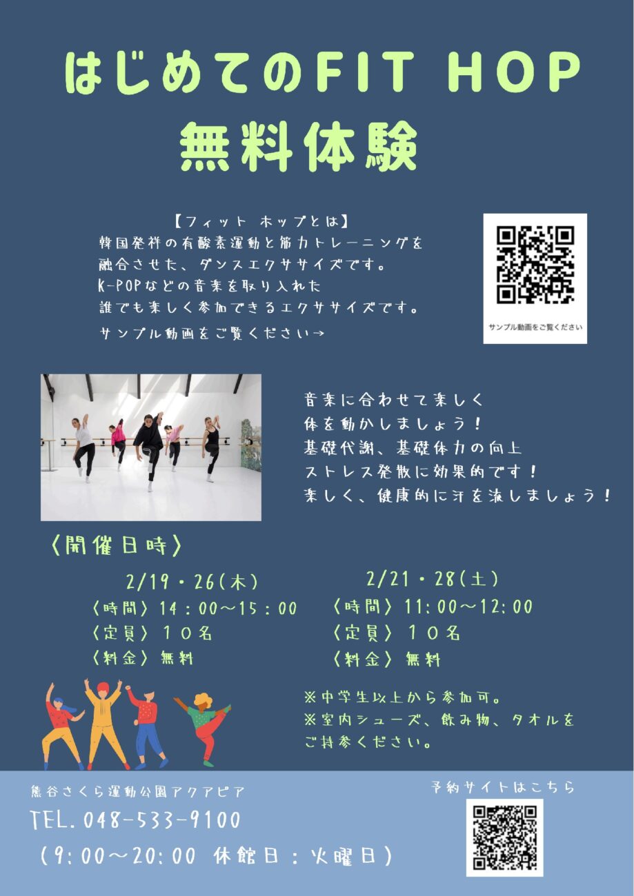 アクアピアで「はじめてのFIT HOP 無料体験」が開催されます。2026年2月19日~28日