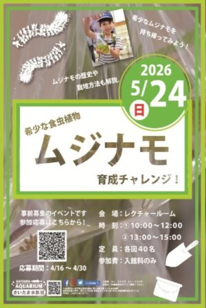 イベントでは、希少な食虫植物「ムジナモ」について、特別講師による育て方や歴史などの解説がされます。