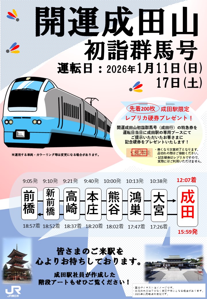 JR東日本で「開運成田山初詣群馬号」が運行します。