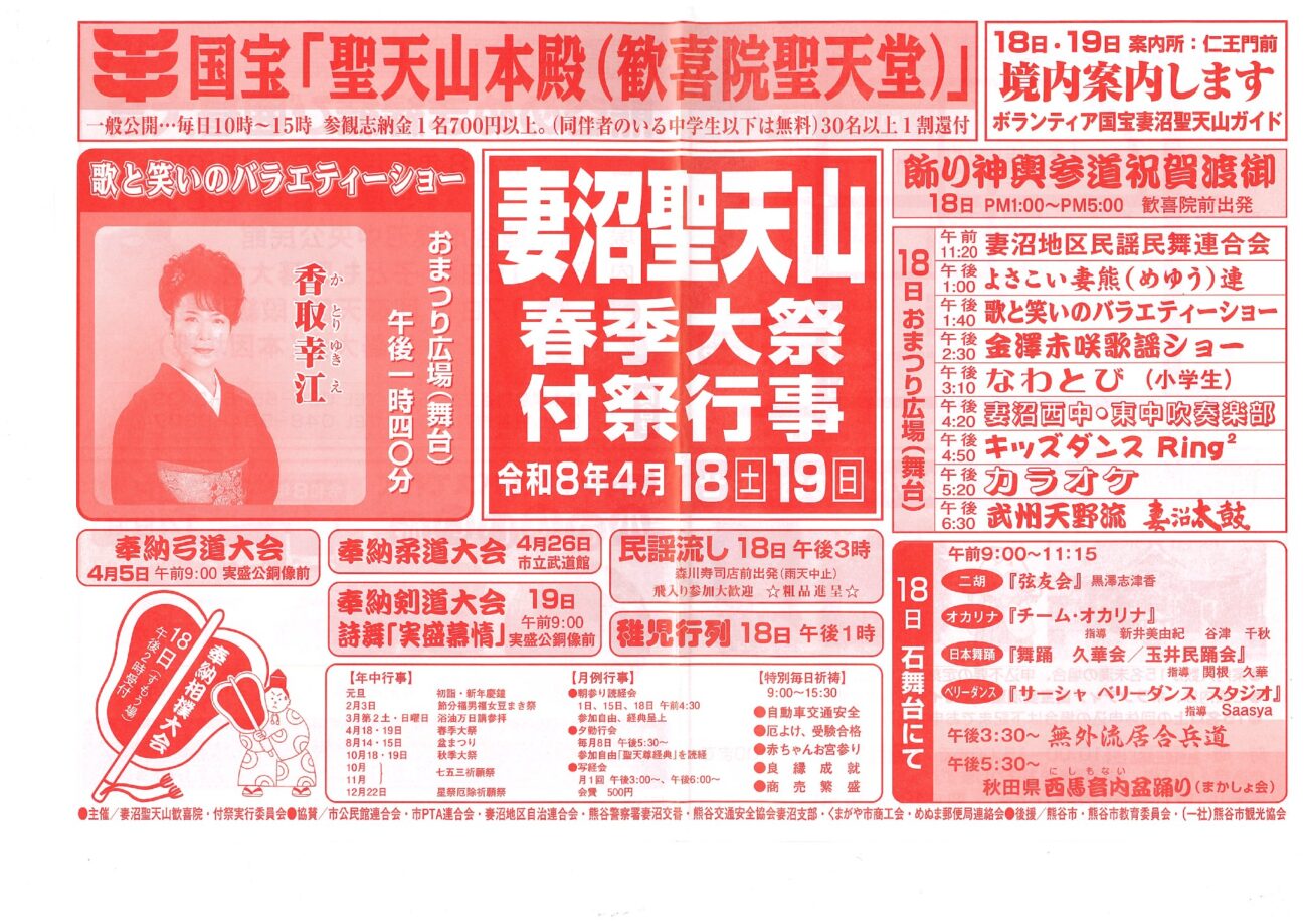 妻沼聖天山で「春季大祭」が開催されます。2025年4月18日 ~19日