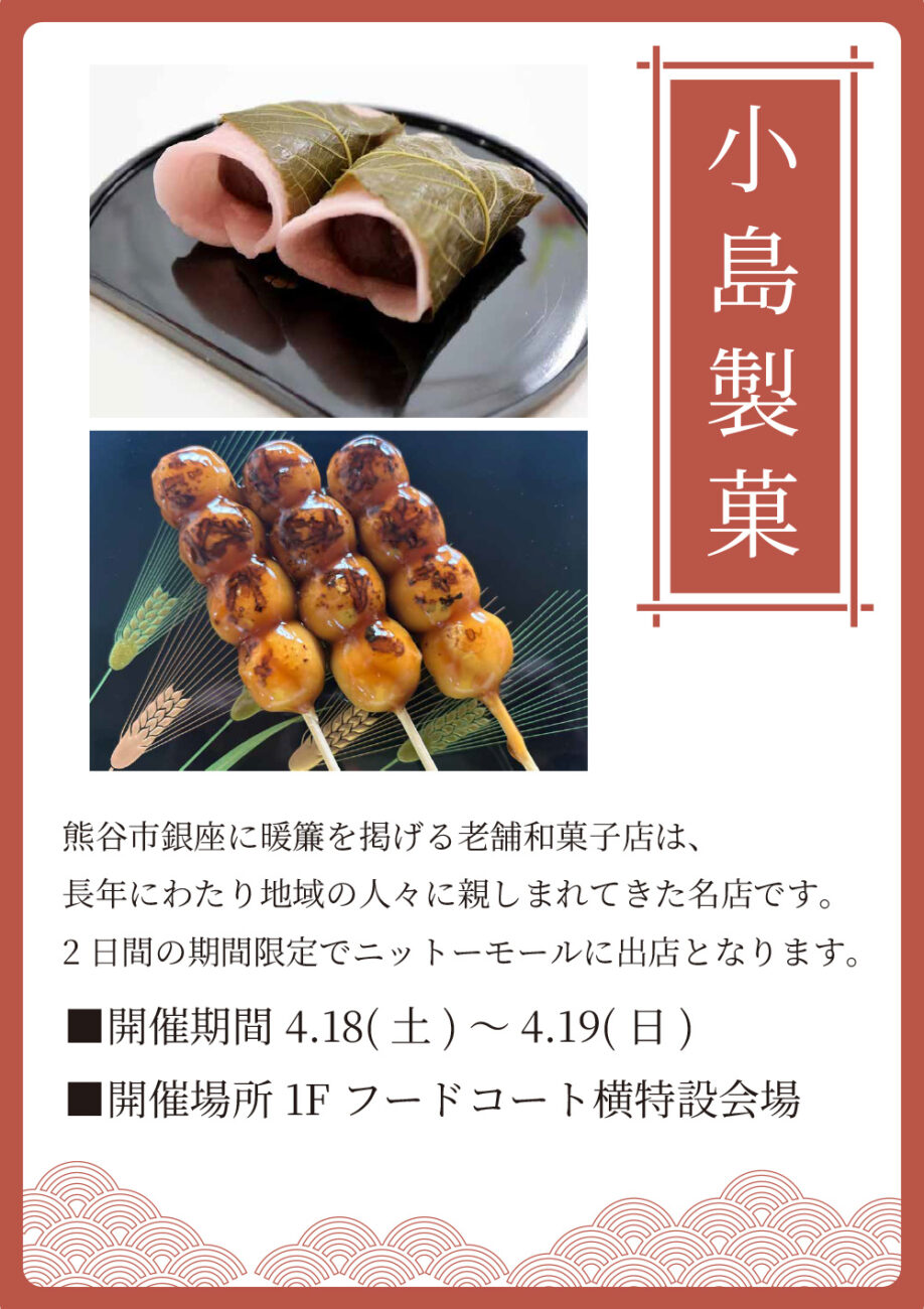 ニットーモールに「小島製菓 和菓子販売会」が期間限定で開催されます。