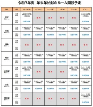 埼玉県内の献血ルームで「年末年始!予約献血キャンペーン」が開催されます。