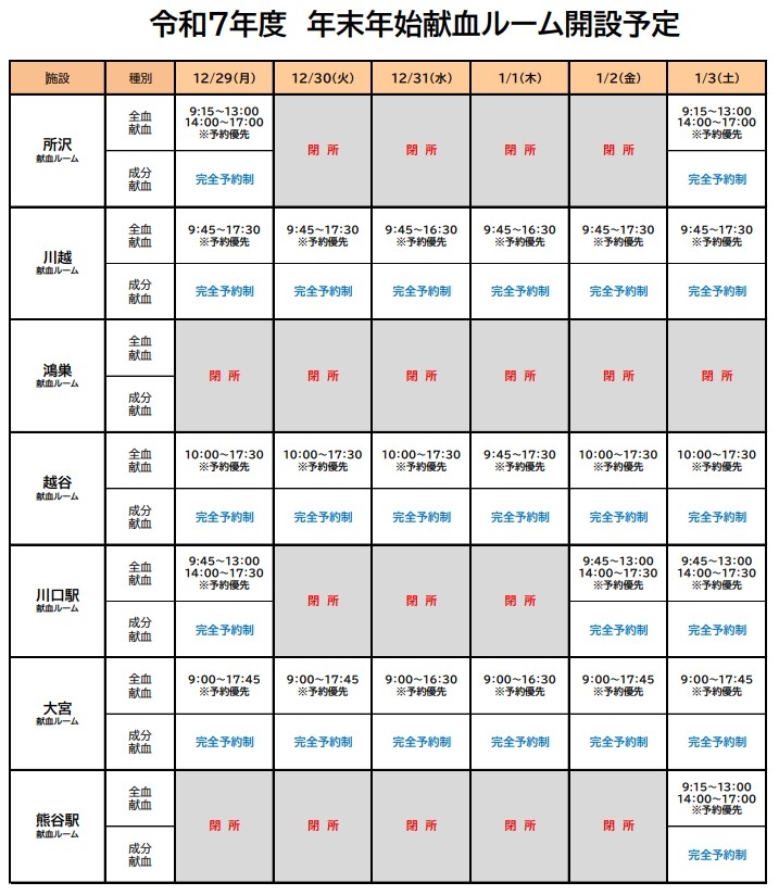 詳細情報は、埼玉県赤十字血液センター様のwebページをご確認ください。