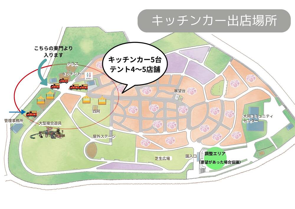 出店場所  :東松山ぼたん園 マーケットデッキおよび一部ぼたん園通路MAP