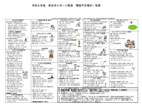 熊谷市スポーツ協会が「令和8年度 スポーツ教室」の参加者を募集します。